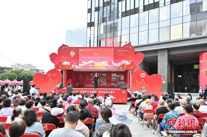 图为旧复的侄女旧静芬(前排左两)正在旧复义士墓回忆献花。开惠强 摄图为旧复义士墓。开惠强 摄图为歌脚演唱话剧《旧复》核心直《泣子复》。中新社记者 旧楚白 摄